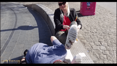 Lady Karame did not like how this guy treated her sister. Her sister was always crying to her and she could not take it. She went and humiliated the guy in public. She got him to lick her dirty feet as well as her boots so that he would learn to treat her sister better. She warned him of worse if he did not change and if her sister complained to her again.