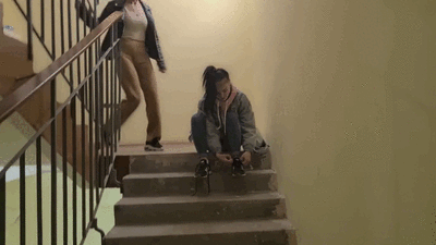 The mistress had just come back from her camping at the woods, and she was so tired to get to her place. The stairs were too many for her and she needed to catch a breath. As she was sitting down, she decided to take off her shoes to let her feet cool down. While at it, a cute lady, was going downstairs and she passed her. She calls her up to help her out, and she didn't want to, but she threatened to hurt her if she didn't and she didn't have an option. She was made to lick the dirty sweaty stinky feet clean.